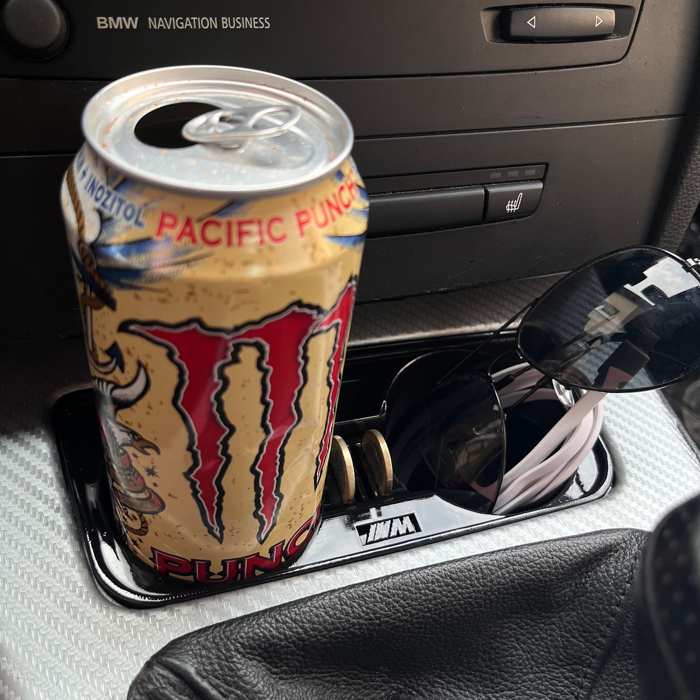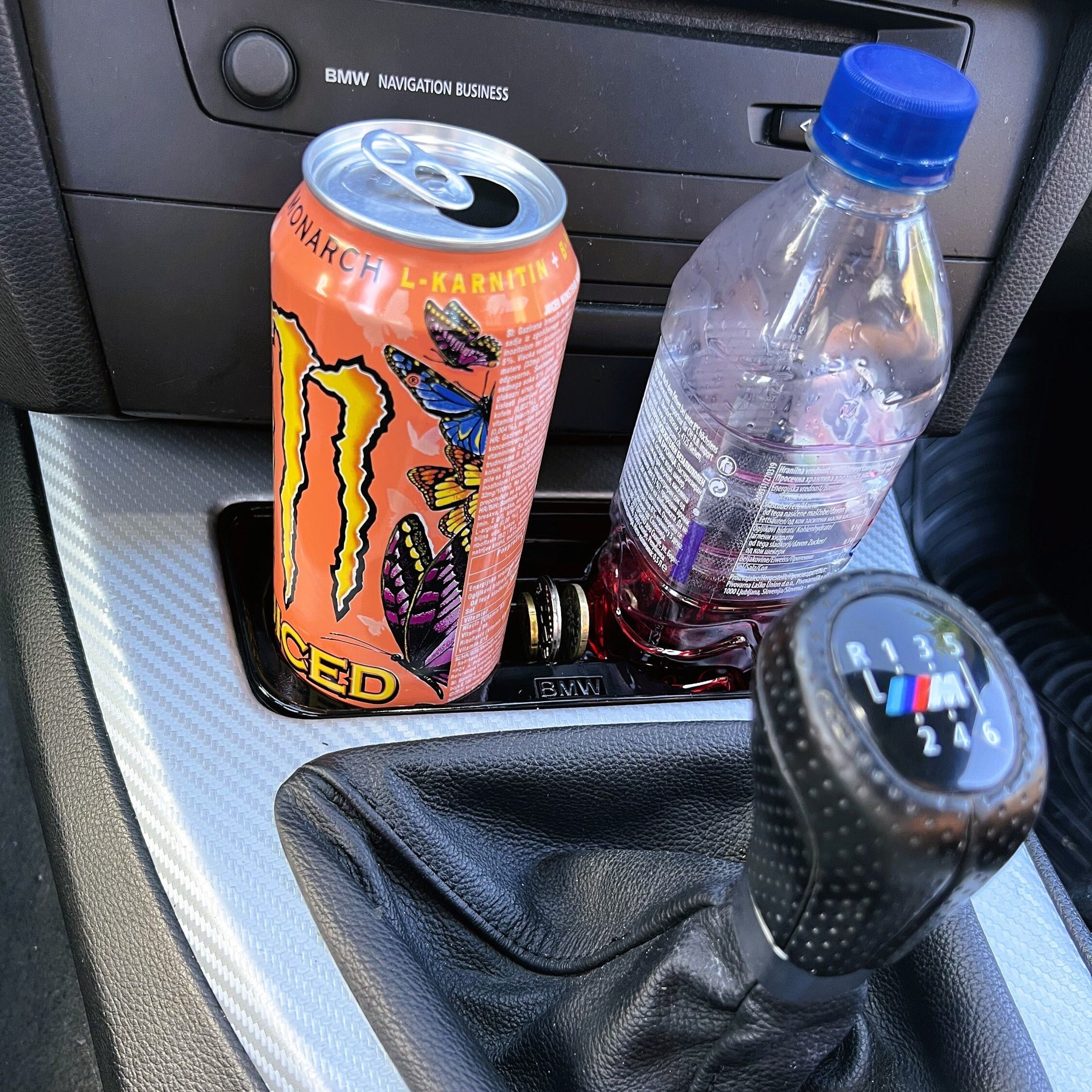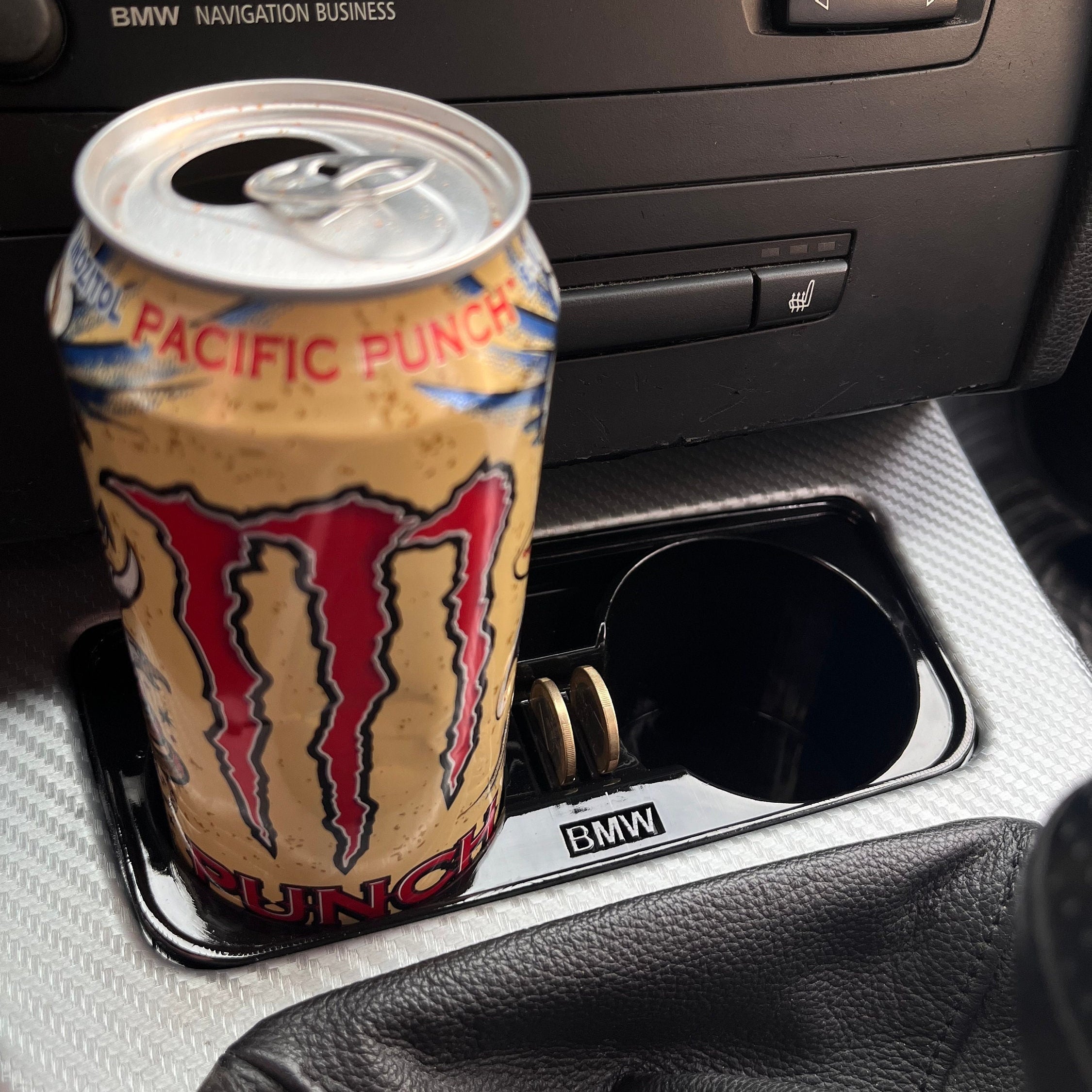 Introducing the ideal cup holder for your BMW 3 Series (E90, E91, E92, E93) — designed to combine precision, functionality, and style. Featuring an engraved BMW logo (Helvetica) or BMW M badge, this custom-made holder fits perfectly into your interior and securely holds up to two drinks in cans or bottles of up to 500 ml.